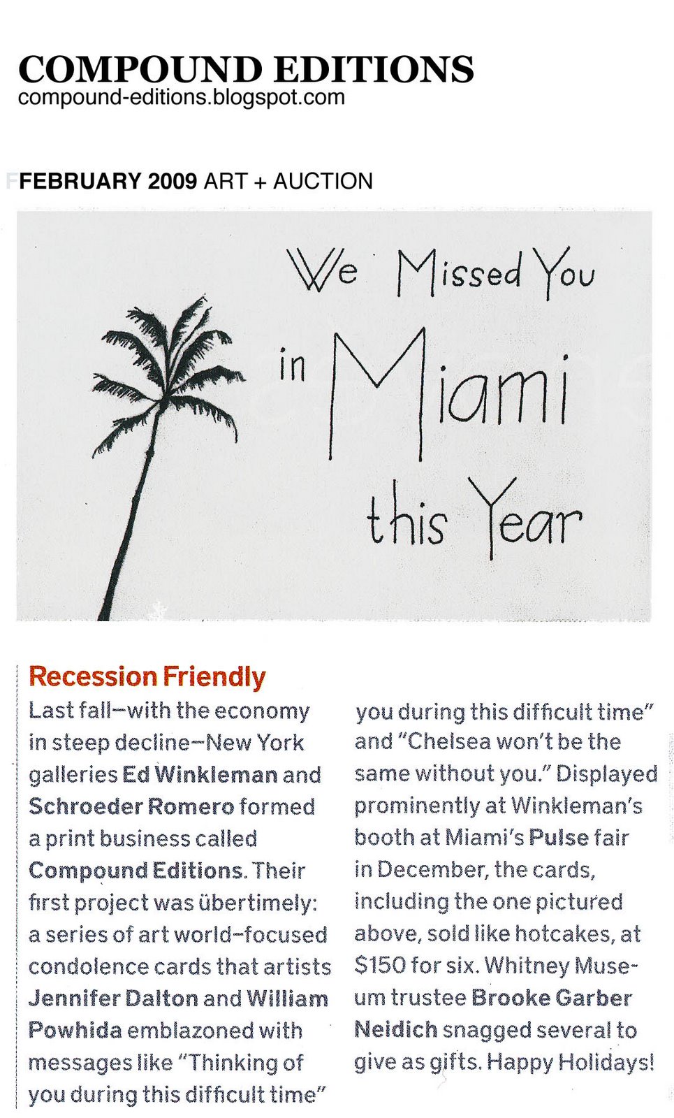 "Recession Friendly," Art + Auction, February 2009
