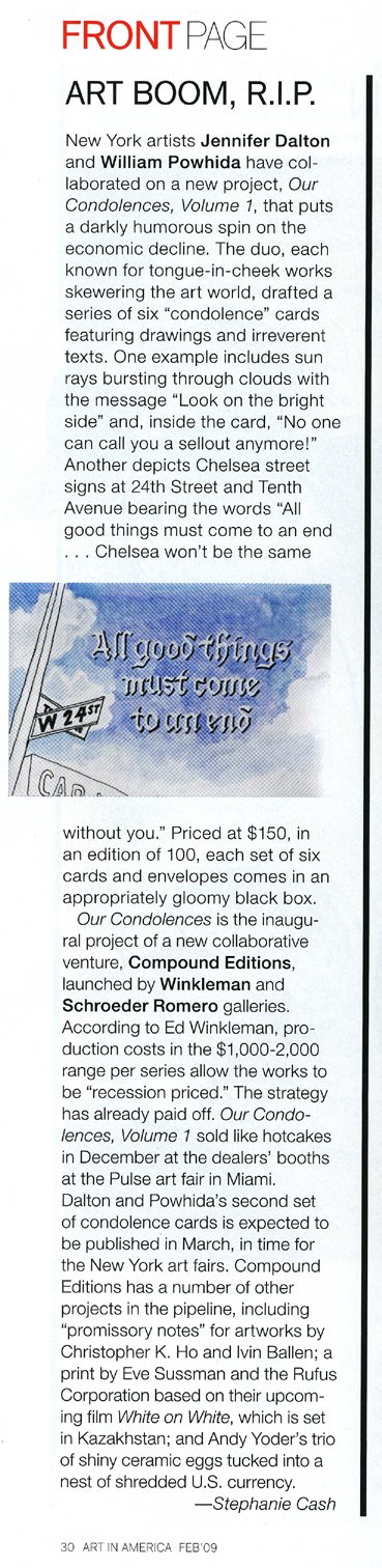 "Art Boom R.I.P." by Stephanie Cash, Art in America, February 2009