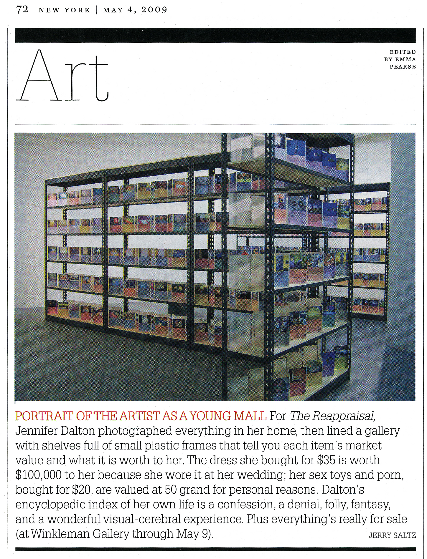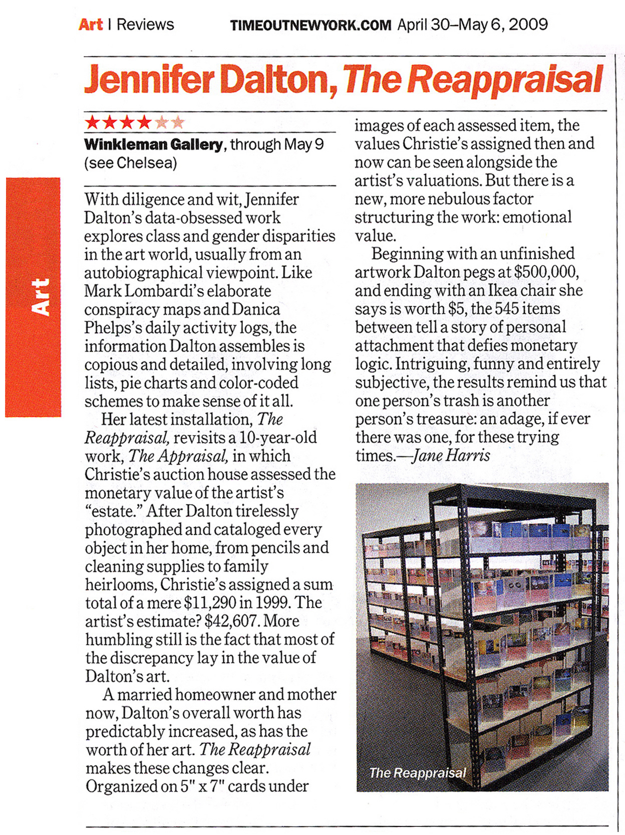 "Jennifer Dalton, The Reappraisal, at Winkleman Gallery," by Jane Harris, Time Out New York, April 30 - May 6, 2009